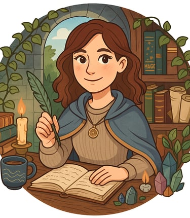 Ivy Hallowell writes cozy fantasy romance for readers who dog-ear the banter scenes and reread the almost-kiss at least three times. Her stories live in the space where wit meets vulnerability - where a grumpy ex-soldier can be undone by a sunshine smile, and a sentient tavern knows exactly who belongs under its roof.