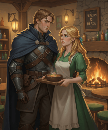 Sharp banter, warm hearts, and a sentient tavern that meddles with the confidence of someone who has never once been wrong.